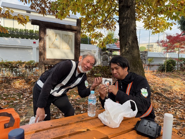 お弁当大会2025/12/02 今日は公園でお仕事です お昼は全員お弁当です おばあちゃんに作ってもらっている颯馬!おいしそうですね 自分で作って来た新婚宮本さん・・・ 赤ウインナー入れすぎやろ癌なるで(汗) 朝から嫁さんが作ってくれた貴重なお弁当 結婚33年で5回目のお弁当です・・・ 工場のおばはんが自給1000円で作ってくれたオニギリを自慢げに食べる 坂本&ダニー(笑) ダニー自家製弁当が無くかなしそうです・・・