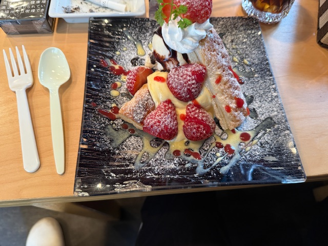 ついケーキまで食べた二人でした。