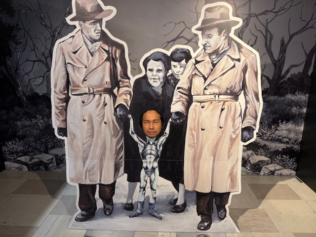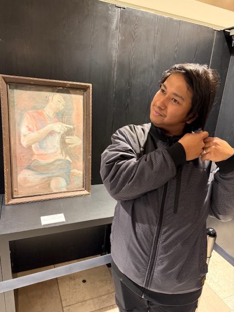 フィリピンの絵から出てくる有名な肖像画の前でふざけるダニー