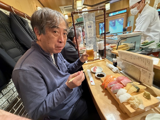 美味しい握り寿司を食べてご機嫌な塩さん