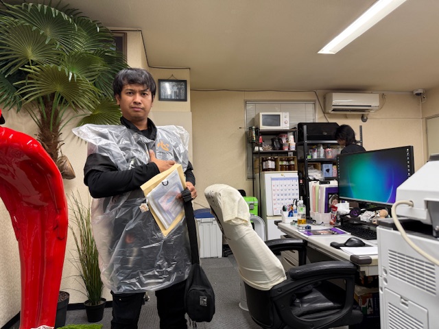 バイクで出社しているダニー